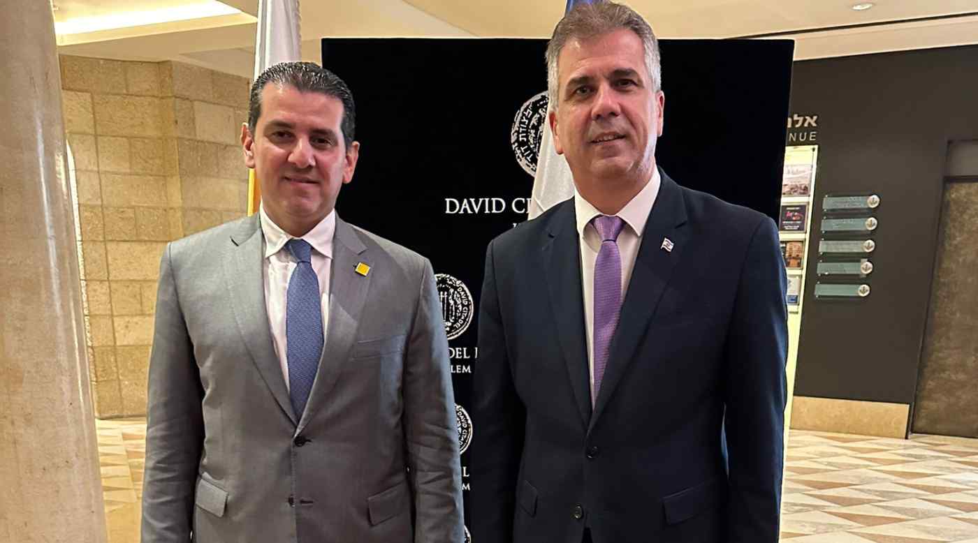 שר האנרגיה והתשתיות, אלי כהן ושר האנרגיה של קפריסין, מיכאל דמיאנוס. צילום: לשכת השר כהן