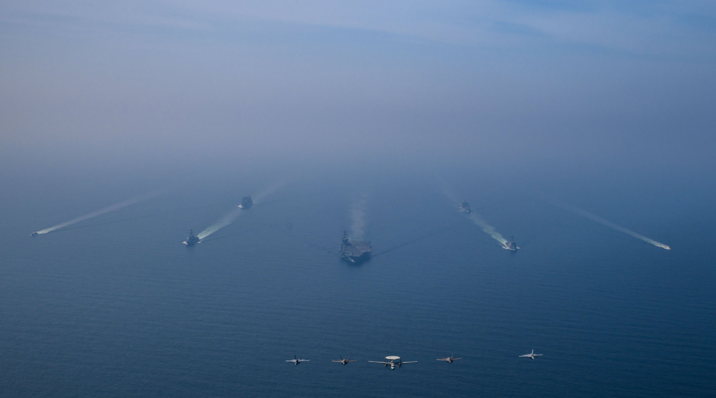 נושאת המטוסים האמריקנית אברהם לינקולן בדרכה למזרח התיכון. צילום: חיל הים האמריקני, מאושר לשימוש חופשי
