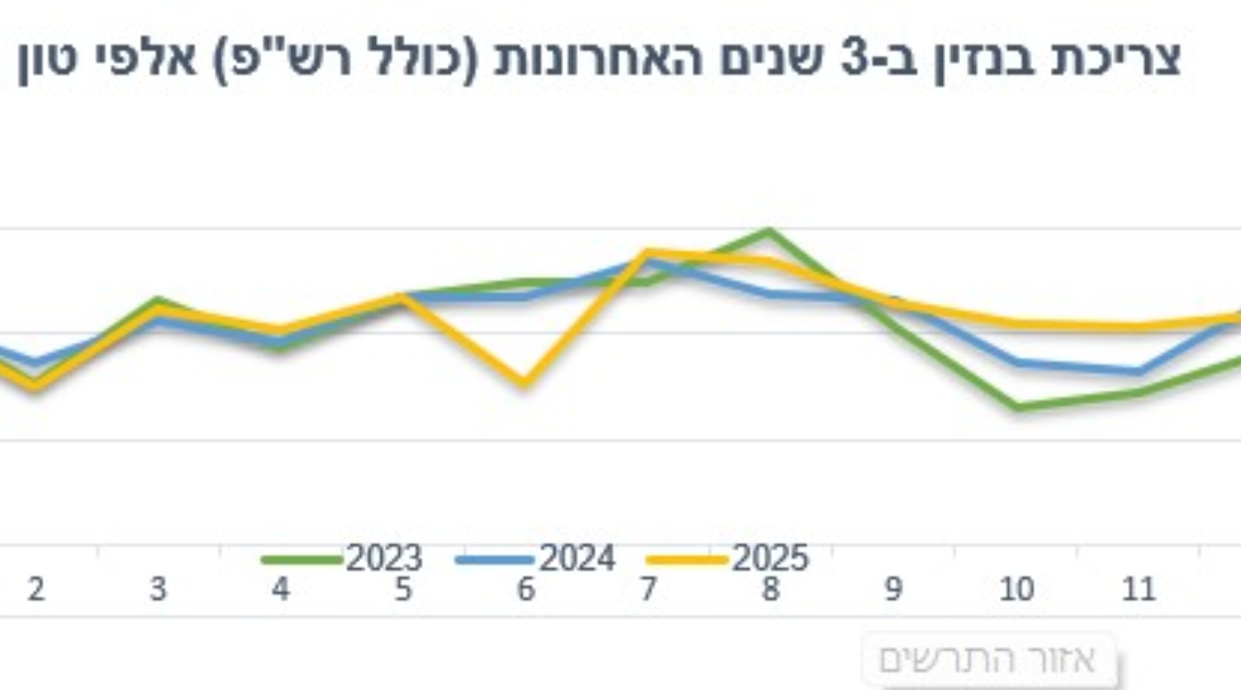 משרד האנרגיה והתשתיות פרסם היום (חמישי) את נתוני צריכת הדלקים בישראל ל-2025. מהנתונים עולה כי מאז סיום מלחמת "חרבות ברזל" בספטמבר אשתקד חלה עלייה בשימוש בבנזין וסולר וזינוק בשימוש בדלק למטוסים אזרחיים.