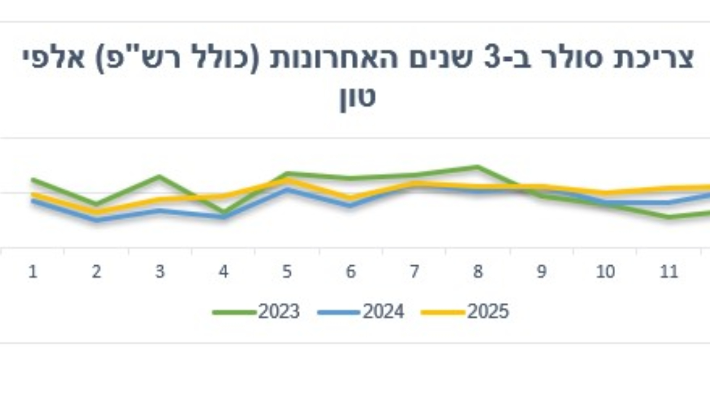 צריכת הסולר לתחבורה ולתעשייה עלתה אשתקד ב-3% לעומת 2024. זאת, למרות המעבר לרכב חשמלי, בשל הריבוי הטבעי ופתיחת מפעלים עם סיום הלחימה בצפון בסוף 2024 והלחימה בכלל בספטמבר 2025.