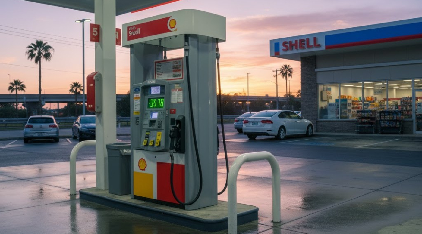 תחנת דלק של חברת של, אילוסטרציה, יוצר: רפאל קאהאן, בעזרת מחולל התמונות של גוגל