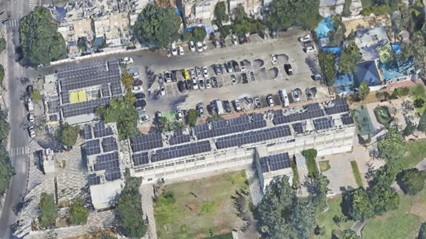 פאנלים סולאריים על גגות מבני בית הספר "דרכא" בבת ים. צילום: אגף התכנון, עיריית בת ים