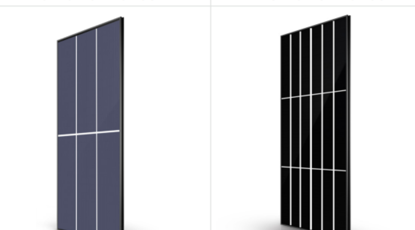 קולטנים סולאריים של חדשים טסלה (מימין) וקולטנים רגילים (משמאל). צילום: טסלה